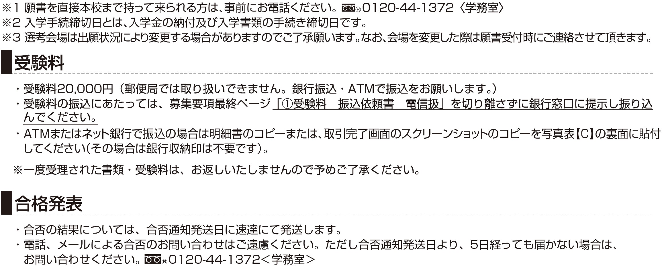 | 募集学科と定員 | 全学科 募集定員の3割程度 |
