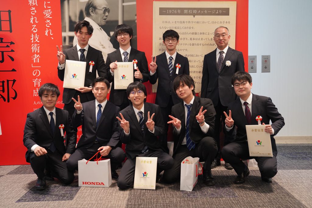 天候にも恵まれ、今年度は、「一級自動車研究開発学科122名・自動車整備科87名」。計209名の卒業生を送り出すことができました。