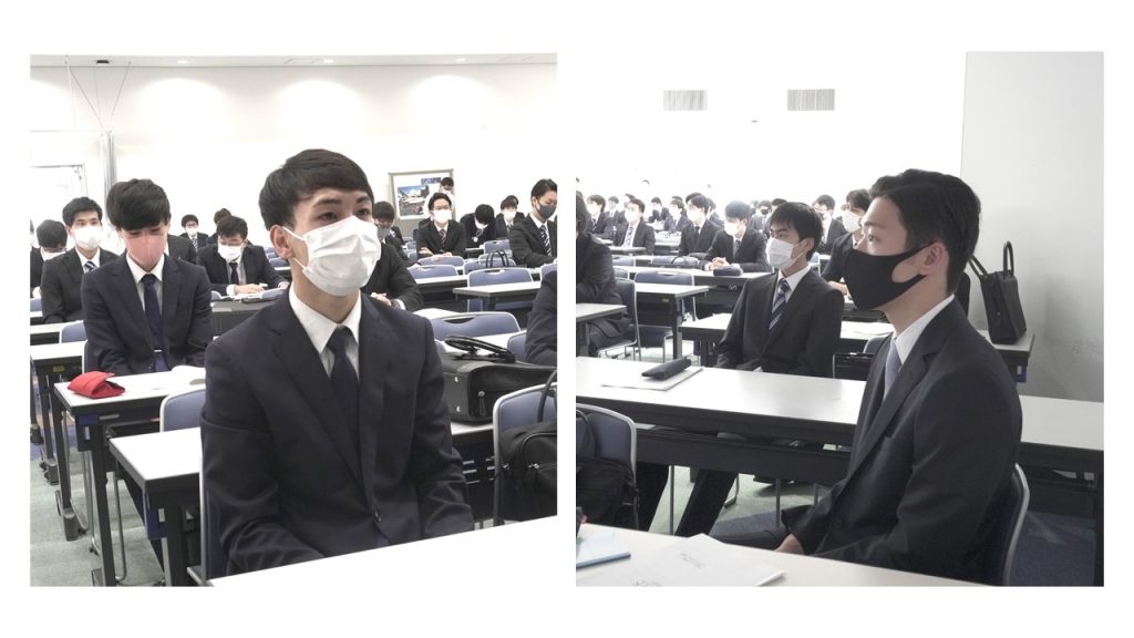 後半には身だしなみチェック、SPI試験と、本田技研工業の人事の方とオンラインでつなぎ、「就職活動を控える皆さんにお伝えしたいこと」と題して講話を実施しました。