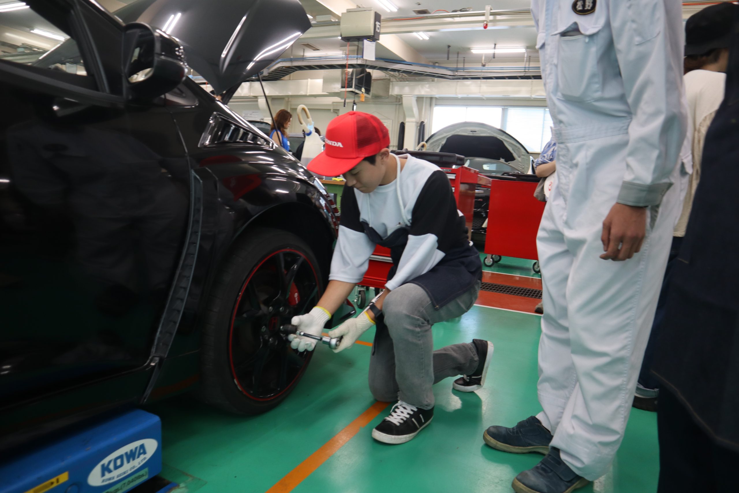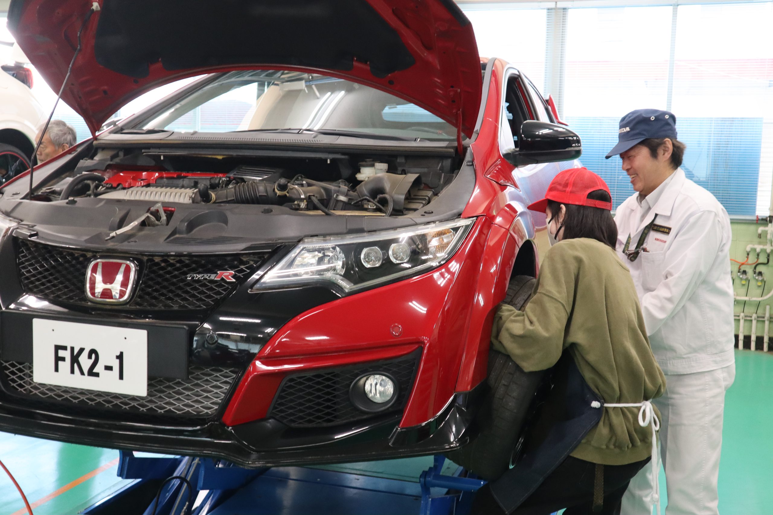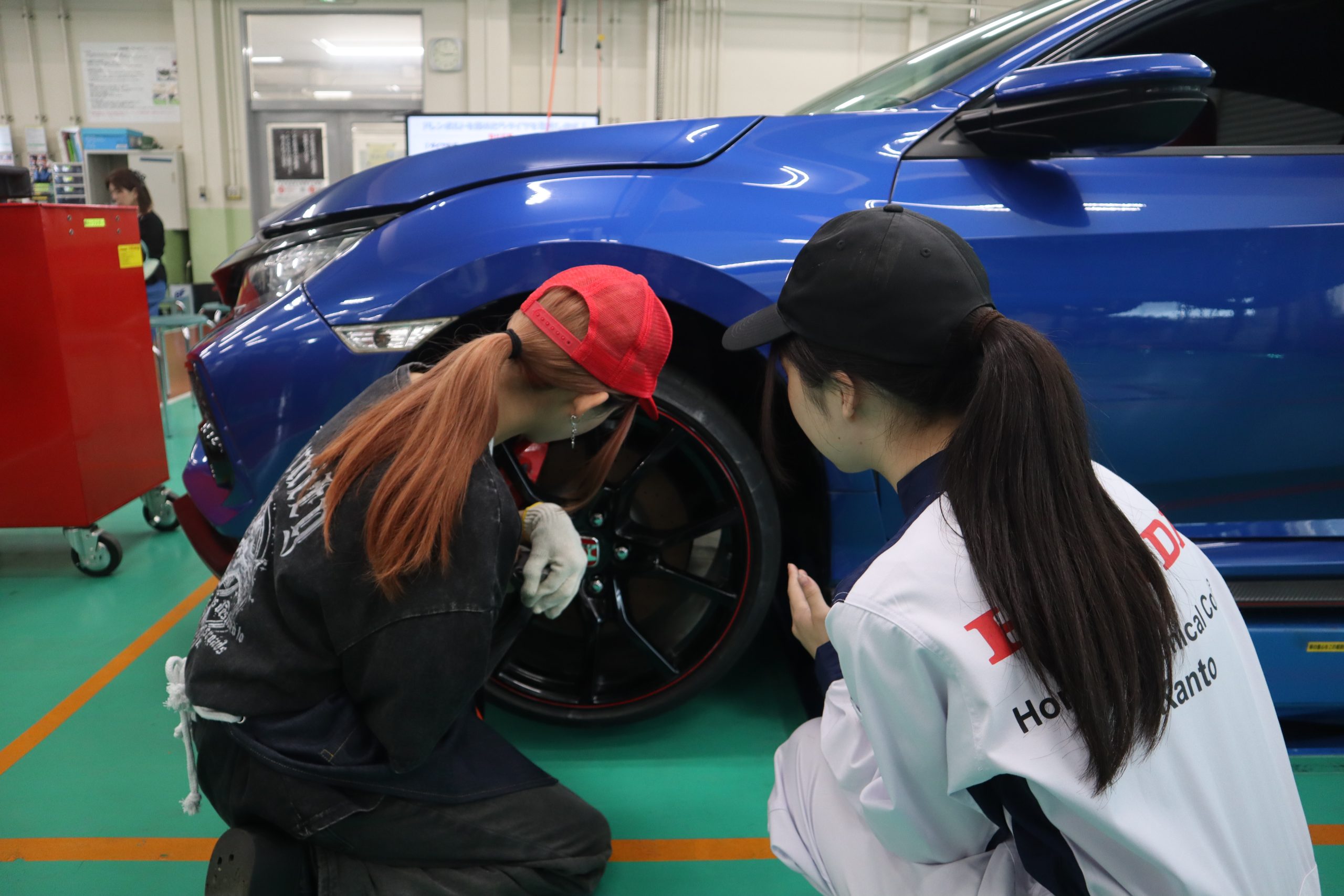 整備体験は シビックタイプRのオイル交換とタイヤ取り付けを