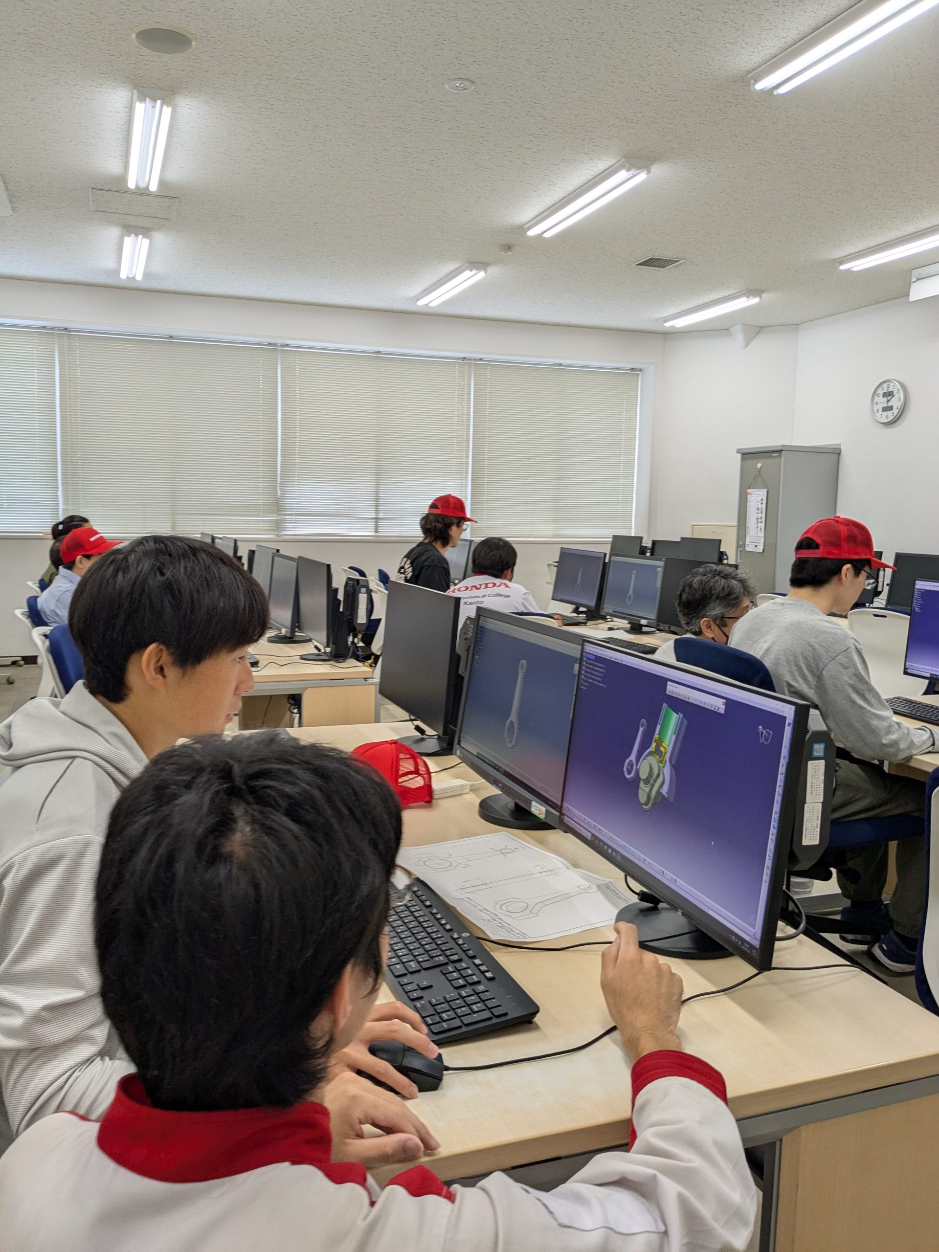 体験オープンキャンパスでは車やバイクを使用しての整備や、実際の研究所で使用するソフトや機械を触って体験することができます。