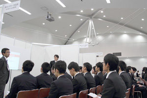 今年度は74社の企業様にご参加いただき、校内において採用後担当者さまによる企業説明会が行われました。1年生の皆さんはほとんどが、初めての企業説明会ということで緊張もありましたが、2日間で様々な企業の説明会を聞くことができ、とても貴重な機会となりました。四輪販売店の企業様の中には動画による会社紹介も行っており、自動車整備士(サービスエンジニア)の仕事について、さらに具体的なイメージが出来た学生も多かったのではないでしょうか。ご参加いただきました企業様におかれましては、学生たちへ大変貴重な機会をご提供くださり誠にありがとうございました。