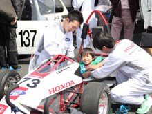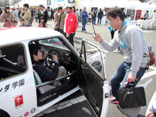 イベントの魅力のひとつは、レーシングマシンを間近で見ることができ、さらにドライバーと話のできるチャンスがあったり、「モータースポーツ」を身近に感じることができることだと思います。ホンダ学園からは昨年より「K4-GP」(軽自動車の耐久レース)に参戦している自動車整備部の「N360ハイブリッド」と、フォーミュラSAE部のレーシングカーを展示。コックピット体験やエンジンサウンドを聞いていただきながら、ホンダ学園のモータースポーツクラブ活動を紹介させていただきました。