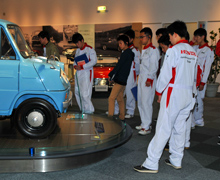 実働する歴代のHonda車両を展示するコレクションホールやクルマやバイクの運転を学ぶアクティブセーフティーパークなどの施設があり、テーマパークのような一面も持ち合わせています。クルマ・バイク好きの新入生たちが、交流を深める場所として、クルマやバイク、モータースポーツにもっとも距離の近い場所を選びました。さて、研修では「スキルアップアドベンチャー」や「大声コンテスト」「コレクションホール見学」などなど、新しい仲間と交流をはかれる様々な企画を考えて臨みました。実施アンケート結果では「友だち作りに役立った」「研修を楽しんで進めることが出来た」という設問に対し、5段階でおおむね高い評価した学生が多く、研修の目的を達成することが出来たと思っています。校外研修と一緒に行った「安全運転講習」では、クルマやバイクを実際に運転できる機会でもあり、クルマ好き・バイク好きの皆さんにとって特別楽しい時間となったようでした。