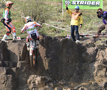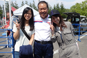 当日は、時折薄日が差す天気で各セクションで、難易度の高い競技が行われました。12コースを3ラップ回って、ホンダのトニー・ボウ選手が優勝、日本人選手の藤波貴久選手は5位となりました。観戦中には、HRC副社長の中本さんと学生が一緒となり、藤波選手に熱い応援をしていました。