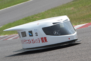 ダンロップコーナーを走行中- 8月2日、新動力エコラン部がEne-1 GP SUZUKA KV40チャレンジKV-1bクラスに出場し、クラス4位の成績をおさめました。