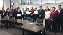 渡航直前 先輩たちと記念撮影- 12月4日、8日の2日間、ニュージーランド(NZ)のオークランド、オーストラリア(AU)のメルボルンにおいて、3月から現地で研修を行っていた国際自動車整備科2年生6名(NZ:3名/AU:3名)の研修報告会が行われました。この報告会は、9ヶ月間の研修で学んだ様々な事柄について英語で発表を行うもので、研修の総括イベントとして毎年行われています。