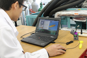 今回は学生の皆さんと一緒にエコラン車両の風洞実験モデルを試作してみました。原寸大の車体を風洞実験できる施設はありませんが、自動車開発エンジニア科の卒業生が製作した風洞実験装置を使えば、3Dプリンタで試作した模型を使い車体の空気抵抗を調べることが出来ます。