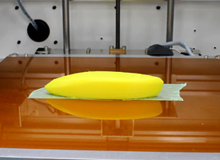 おおよそ45分位で風洞実験用のモデルが完成しました。樹脂の色が黄色いので、見た目はたまご焼きみたいですね。