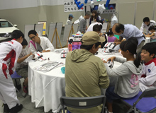 ホンダ テクニカル カレッジ 関東の学園紹介コーナーをご用意いただき、N360ハイブリッドのペーパークラフト制作とクラブ活動展示紹介を行ないました。