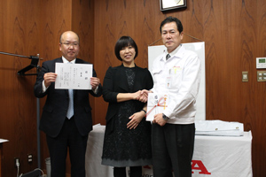千葉県野田市のHonda Cars 野田<(株)ホンダプリモ利根>様から、(株)千葉銀行の「地方創生私募債」を利用して、ホンダ学園に「懸垂幕」の寄付をいただきました。先日、当校の応接室において、Honda Cars 野田の岡村社長様と、(株)千葉銀行林田次長様をお招きし、寄贈式が開催されました。