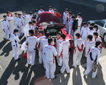 Enjoy HondaやレーシングサンクスデイなどHondaのイベントで、新型NSXを見ることのできる機会が増えてはいるものの、シートに座ったり、好きに触ることの出来る機会はまだまだ少ないと思います。そうしたこともあって学生の皆さんは順番でシートに腰掛けステアリングを握り、新型NSXをじっくりと観察していました。本田技研工業の支援を受け、今年はNSX以外に、燃料電池自動車 クラリティ FUEL CELLやアコードハイブリッド、オデッセイハイブリッドなどの車両も教材に加わっています。今後も学生の皆さんに最新技術に触れることの出来る環境を整えていきたいと思います。
