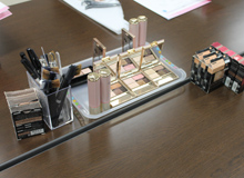 資生堂様にお持ちいただいたメイク道具で参加者全員で実際にメイクを行いました。参加した女子学生は鏡を見ながら一生懸命メイクに挑戦。普段とは一味違う、素敵な女性に変身しました。最後には資生堂様新商品の口紅がプレゼントされ、学生たちも大喜び。