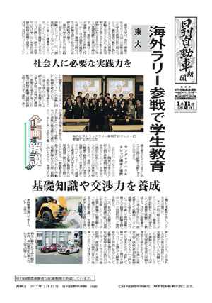 - 平成29年1月11日(水)日刊自動車新聞の16面に、ホンダ学園と東京大学の合同プロジェクト「海外ヒストリックラリー参戦プロジェクト」の取り組みが掲載されました。