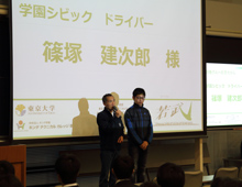 「車両にとても満足。全て自分がやるという気持ちで望んでください」ドライバーの篠塚建次郎さんから製作した車両への評価と、学生の皆さんに対するメッセージを頂きました。