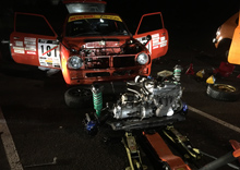 今期製作したSB1シビック1200RS(通称;学園シビック)は、ボアアップによる出力向上とブレーキの大径化を実施しましたが、車検の前日にロールケージの不適合が発覚。Competition部門(タイム計測が行なわれる競技部門)出走が危ぶまれましたが、スペアカーとして現地に持ち込んでいたもう1台のSB1シビック1200RS(通称;オレンジシビック)のボディーを使い、パワートレインとエンジンを徹夜で移植し車検を通過。もう一台のレビンもロールケージ不適合が発覚し、車検前までに修正作業を行ないましたが、更なる指摘を受け、Competition部門への出場はできず、ツアー部門にエントリーしました。
