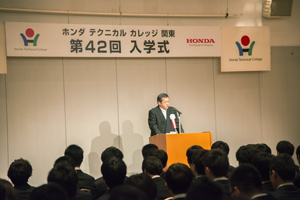 今年度は209名の新入生を迎え入れました。池田校長は新入生の皆さんに「夢、目標を実現させる為、前向きに、いろいろなことにチャレンジしてください。ホンダ学園は、多くの機会を提供していきます。知識や技術、資格の取得はもちろんのこと、社会人となってからも付き合える良い友達を得ることや、他では味わえない、数多くの感動や経験をチャレンジ精神で、自ら勝ち取って下さい」と式辞を述べました。