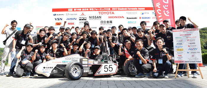 ホンダテクニカルカレッジ関東では、学科に関わらず、モノづくりに興味を持つ学生が「フォーミュラSAE部」に集い、大会に挑戦しています。