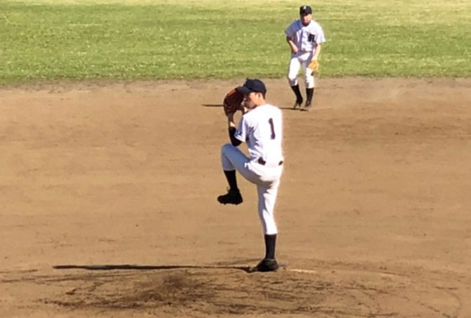 度重なるピンチを封じて完投!(研究科2年2組 井上翔太 投手)