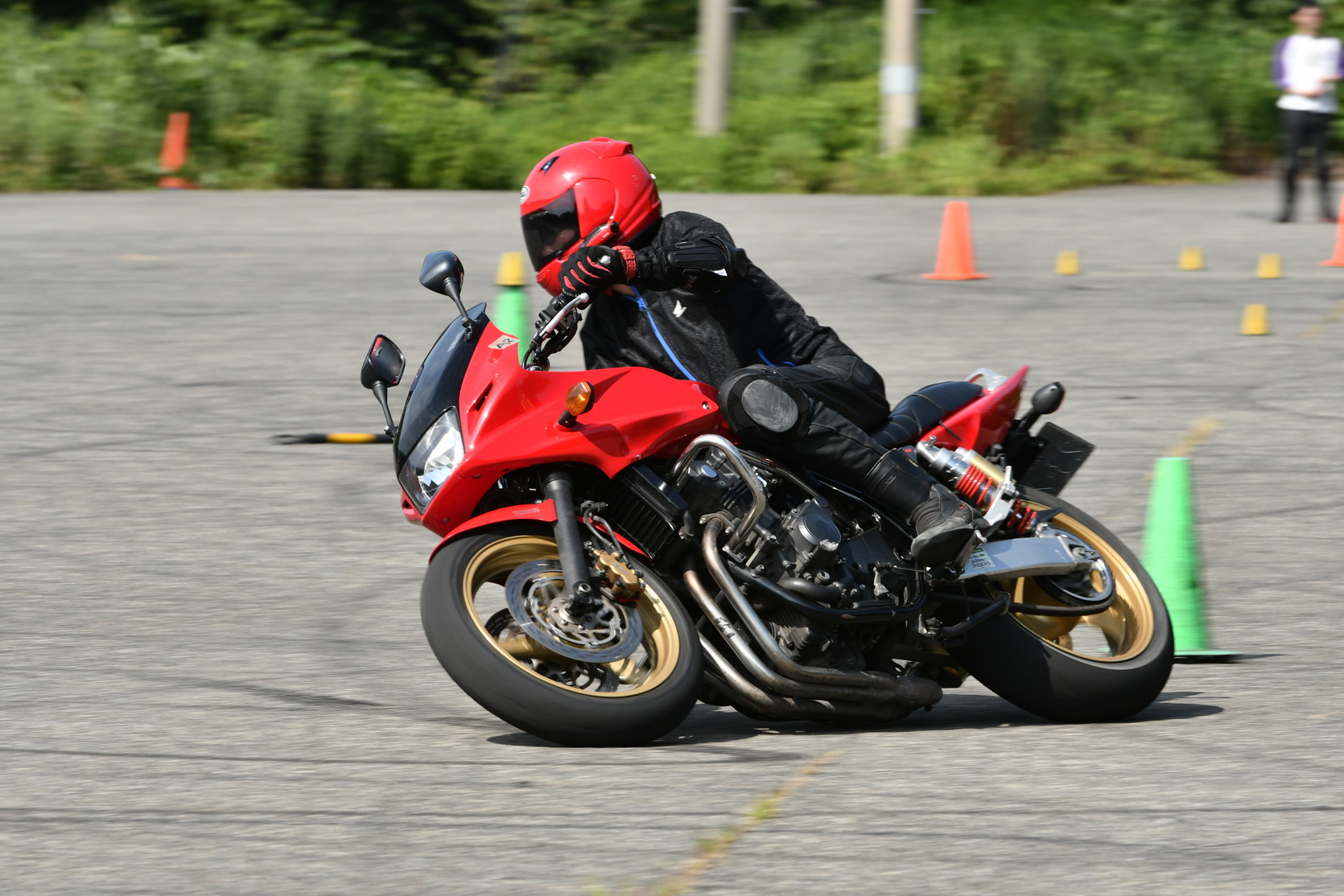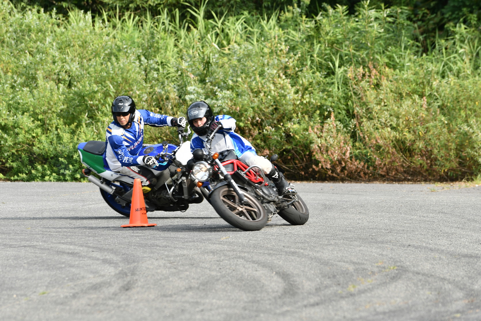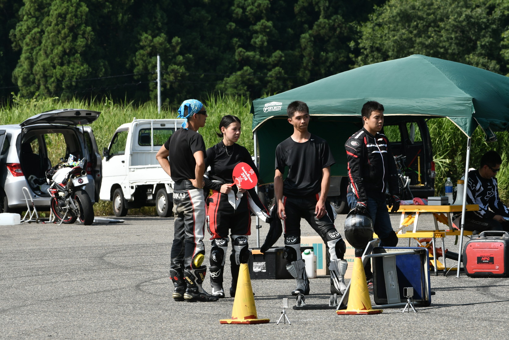 走行会場到着後、自分のマシンでジムカーナ特有の360°以上の回転セクションやライン踏みセクション等を含めたタイムアタックを早速開始。8月4日(土)は猛暑で路面は完全ドライ。5日(日)は雨が降り、ヘビーウェットのコンディション。両日ともに学生たちは果敢にコースを攻め、ときには転倒しながらも自らの腕を磨きました。