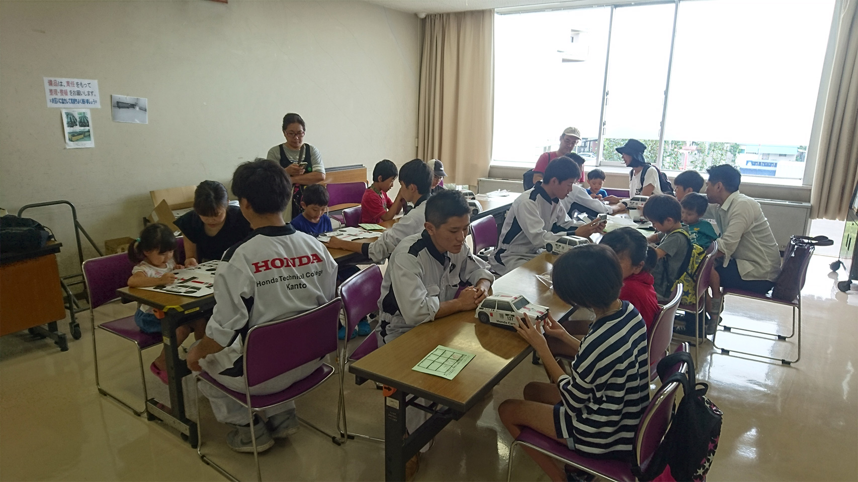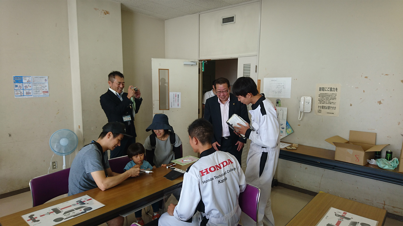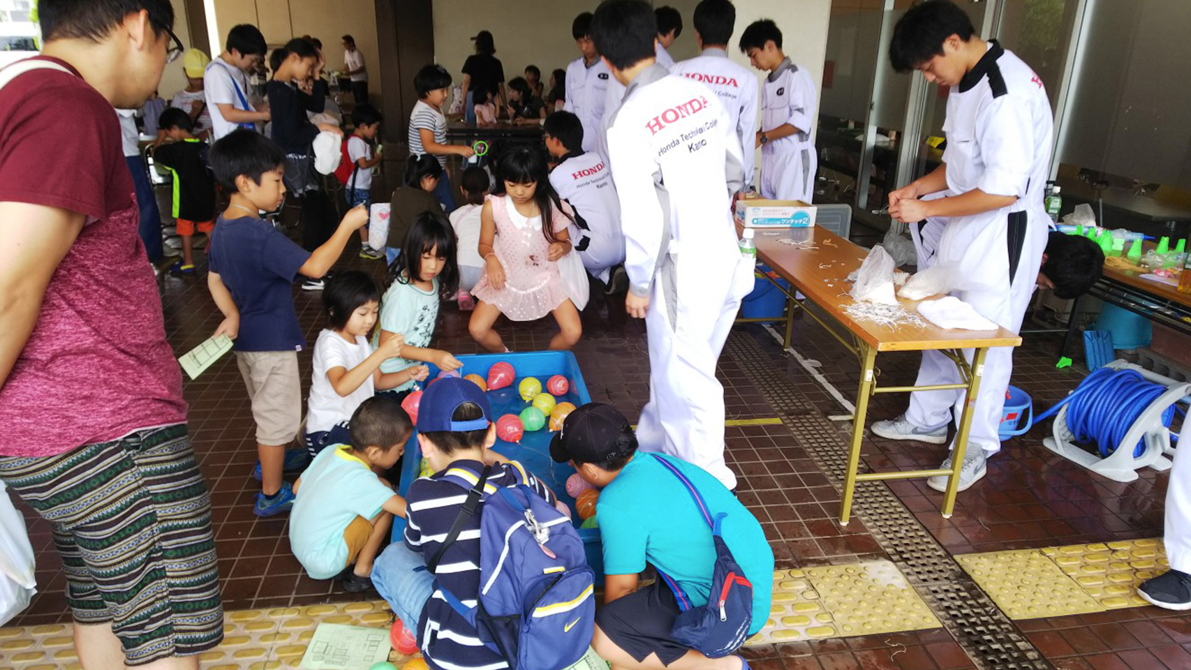 当日は「スーパーボールすくい・ヨーヨーつりの模擬店サポート」、また、ホンダ学園として初めて「ペーパークラフトのブース」を出店しました。