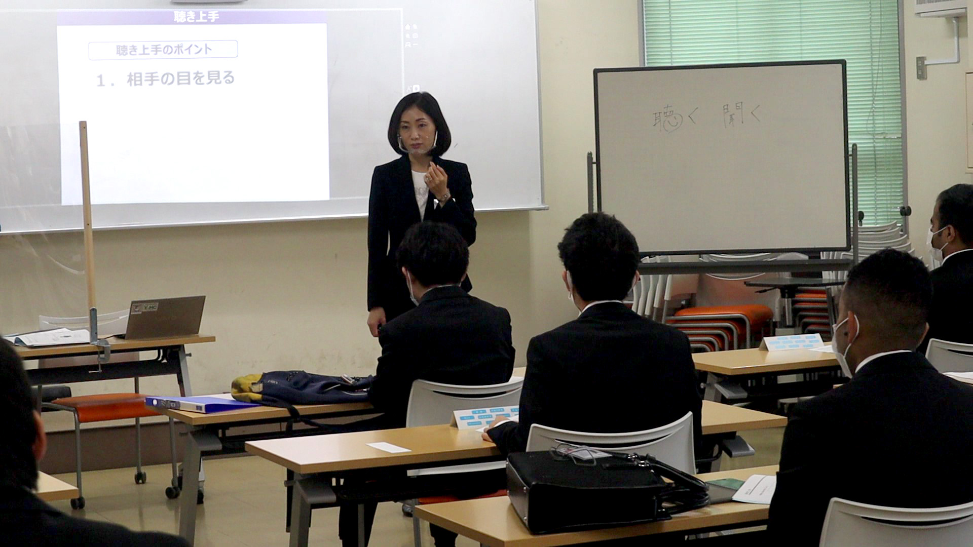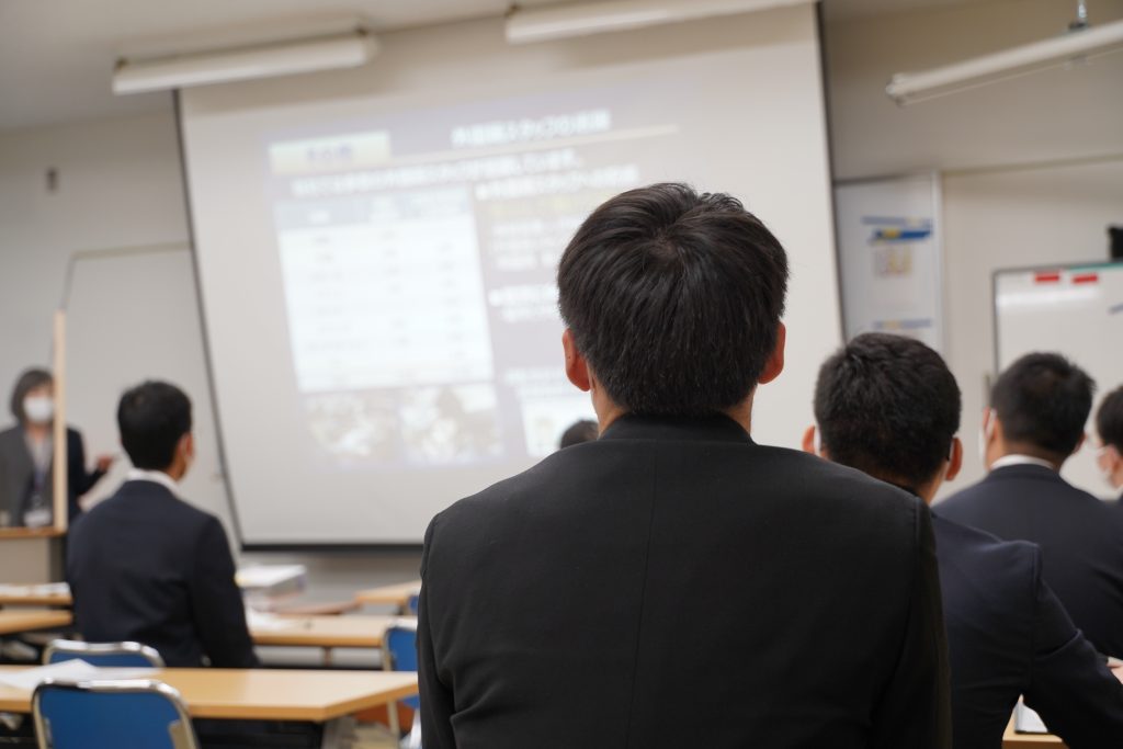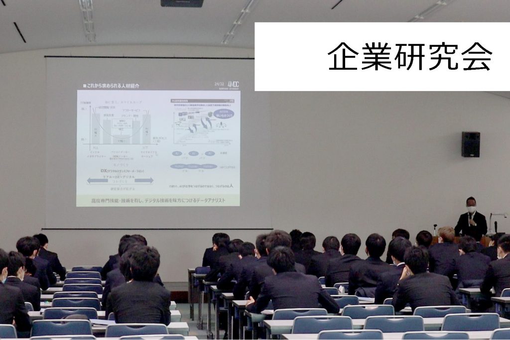 また、学生が待ちに待った『賛助会企業セミナー』が12月7日、8日の二日間で開催。今年度からやり方を大きく変化させ、コロナ対策を徹底した上で、特に学生が希望する企業様(参加企業 75社)に来校及びWebで企業説明会を実施致しました。