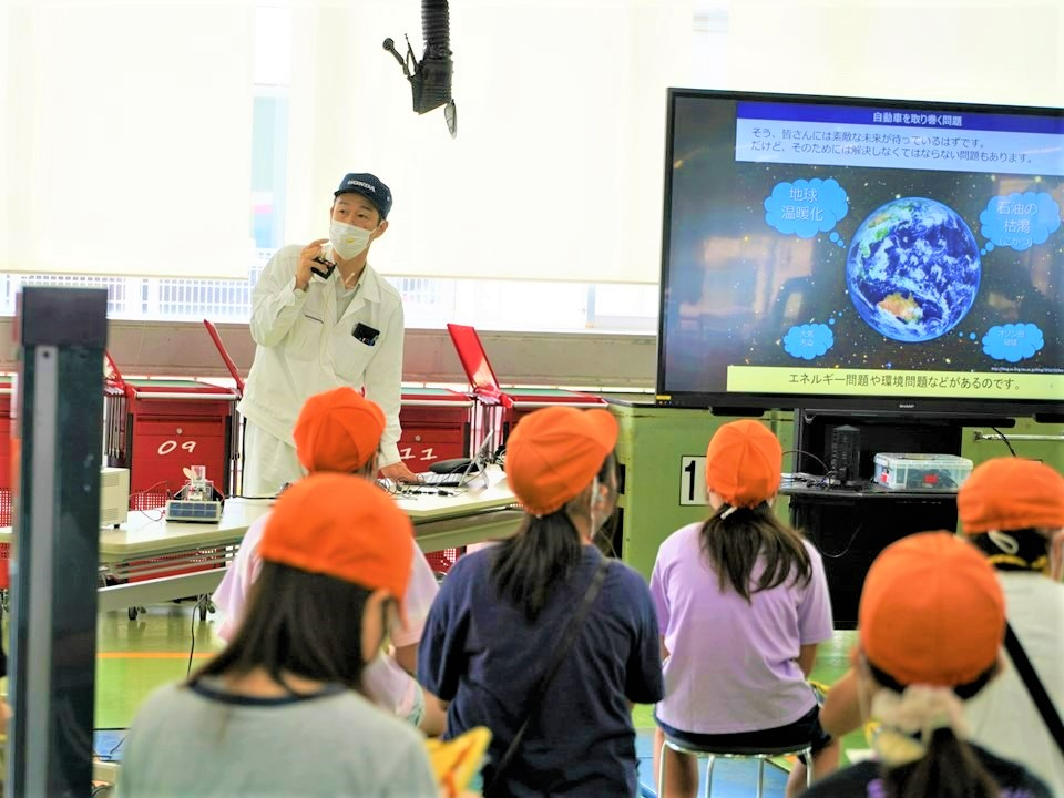 自動車の歴史、エンジンの構造、水素エネルギーについての講義や体験授業を実施