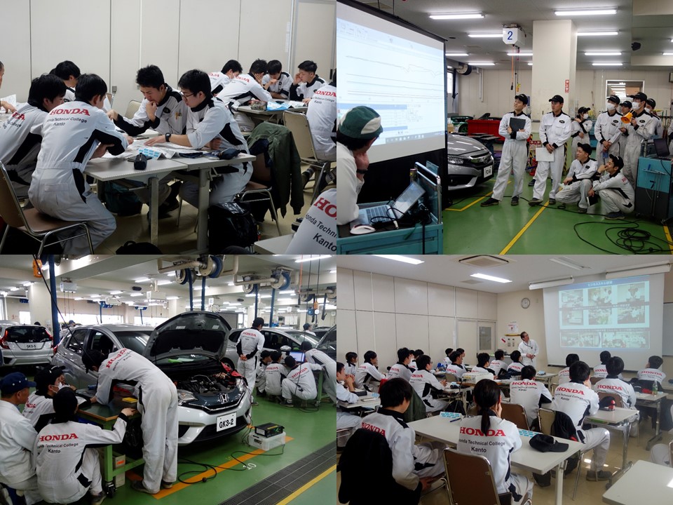 Hondaの講師より、Honda車の電子制御装置故障修理に関する、高度な診断技術や最新の電子制御装置についての実習。