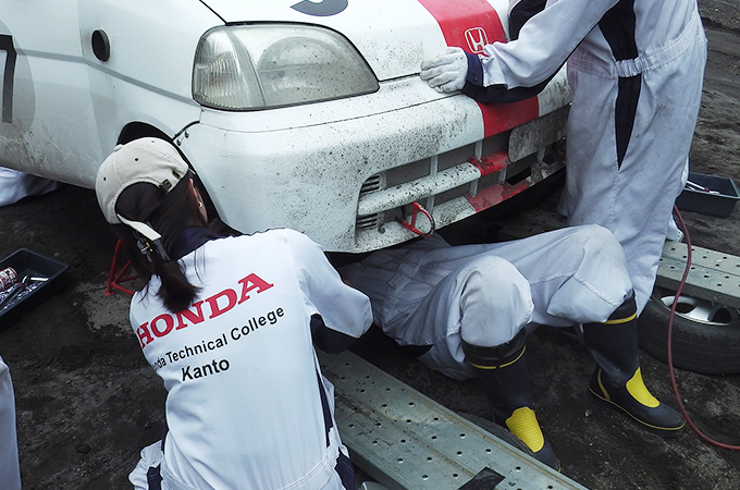 当日のレースでは、ラジエータの脱落、サスペンションが壊れるというトラブルが発生。部員たちの懸命なリカバリー作業で、早くレースに復帰することができました。