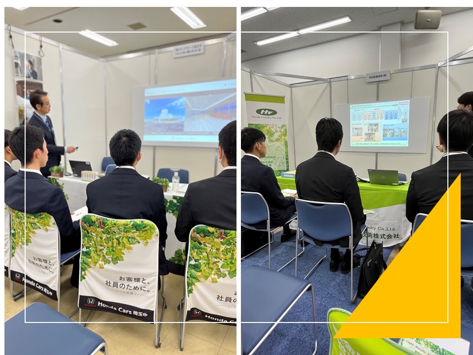 卒業生が人事担当としてご来校される企業様も。学生も積極的に質問するなど、自らの将来を切り拓くチャレンジをしておりました。