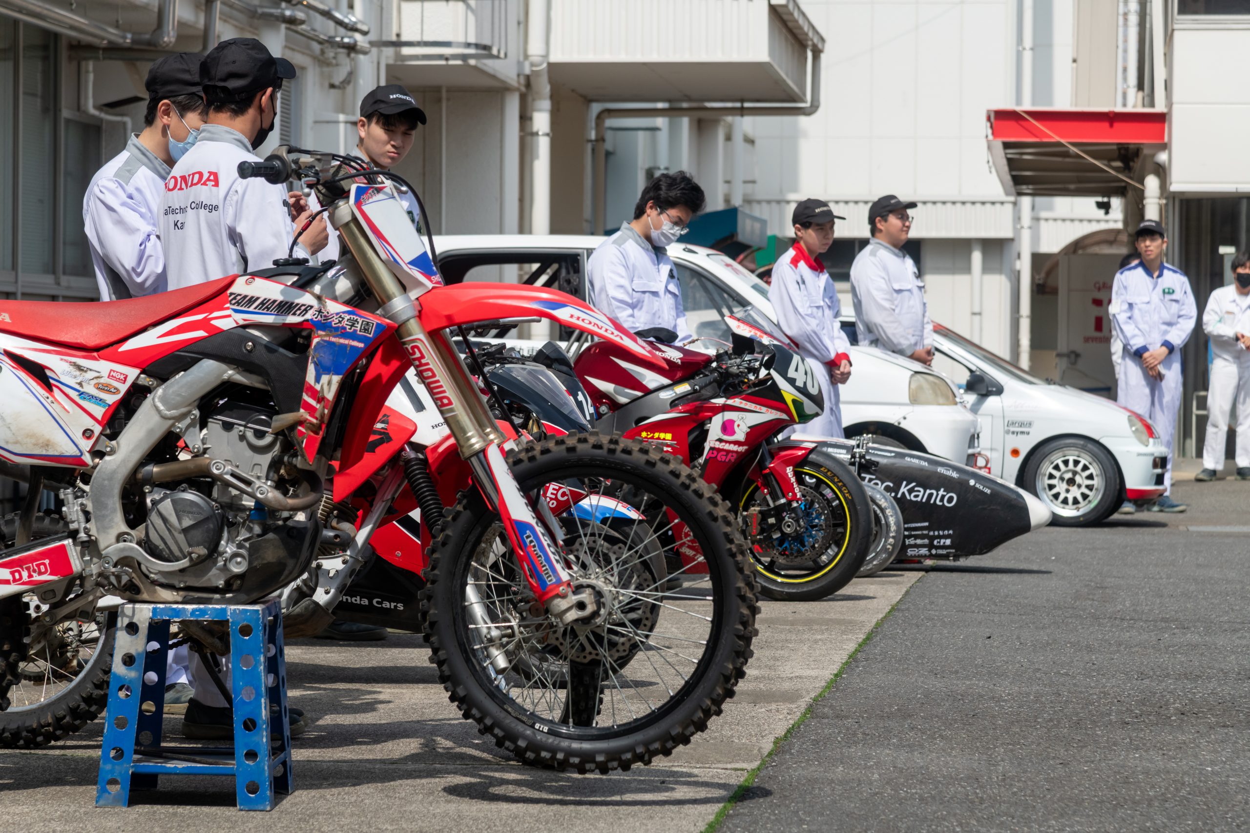 校内見学では整備の実習や開発設計のプロセスおよび卒業生の制作物をお見せします。