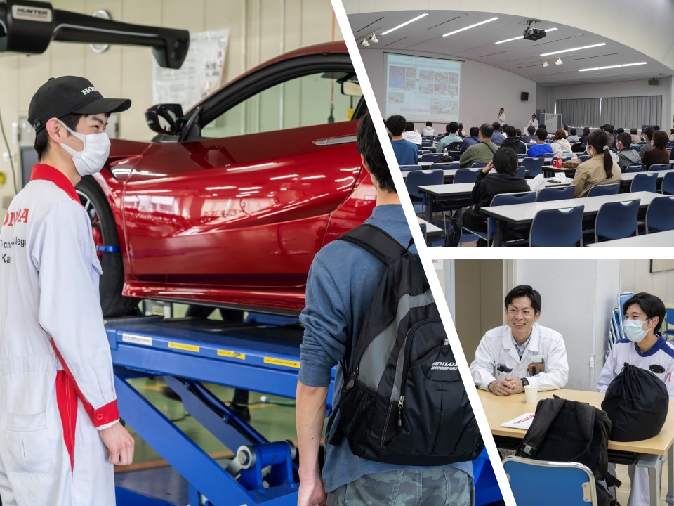 また、学校概要説明では、ホンダ学園の強み、各学科の詳細、就職状況、入試方法についてご説明いたします。