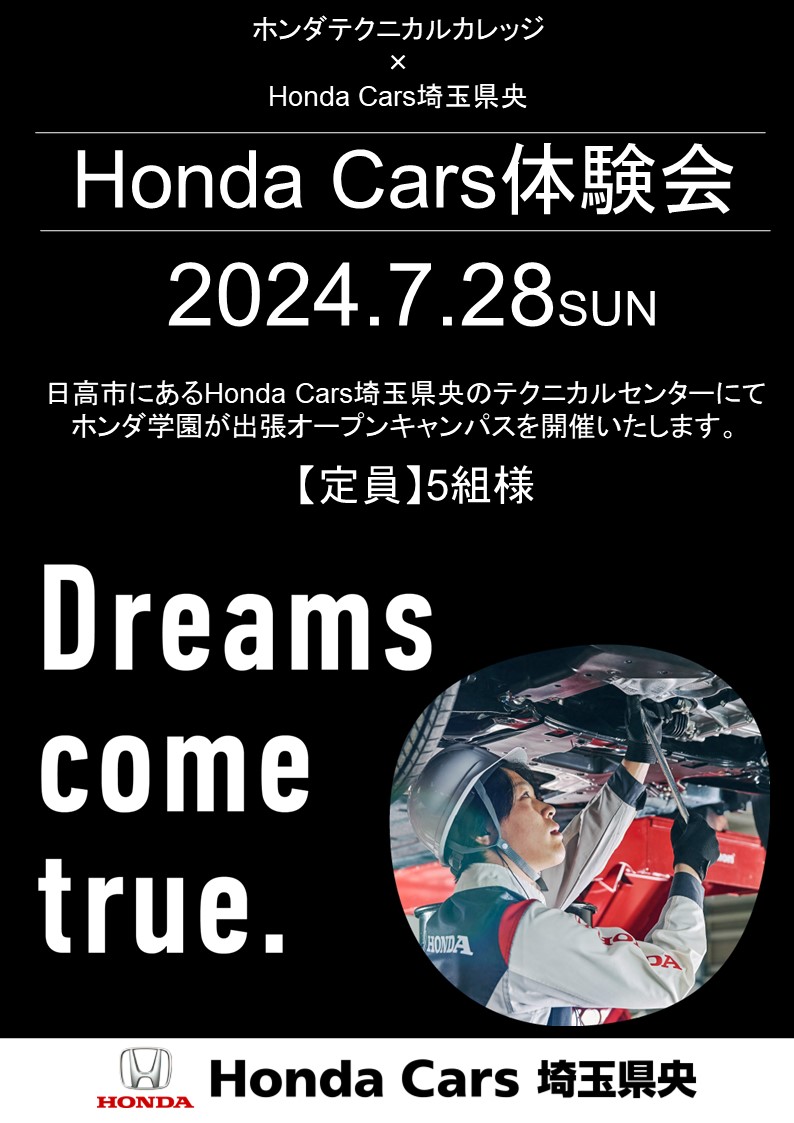 ホンダカーズ埼玉県央様にて、ホンダ学園が出張オープンキャンパスを開催いたします。