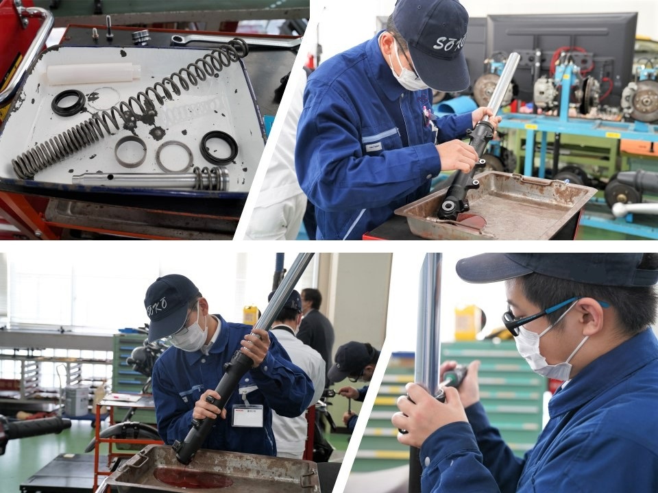 実習体験授業では、CB350のフロントホークオーバーホールを実施!!