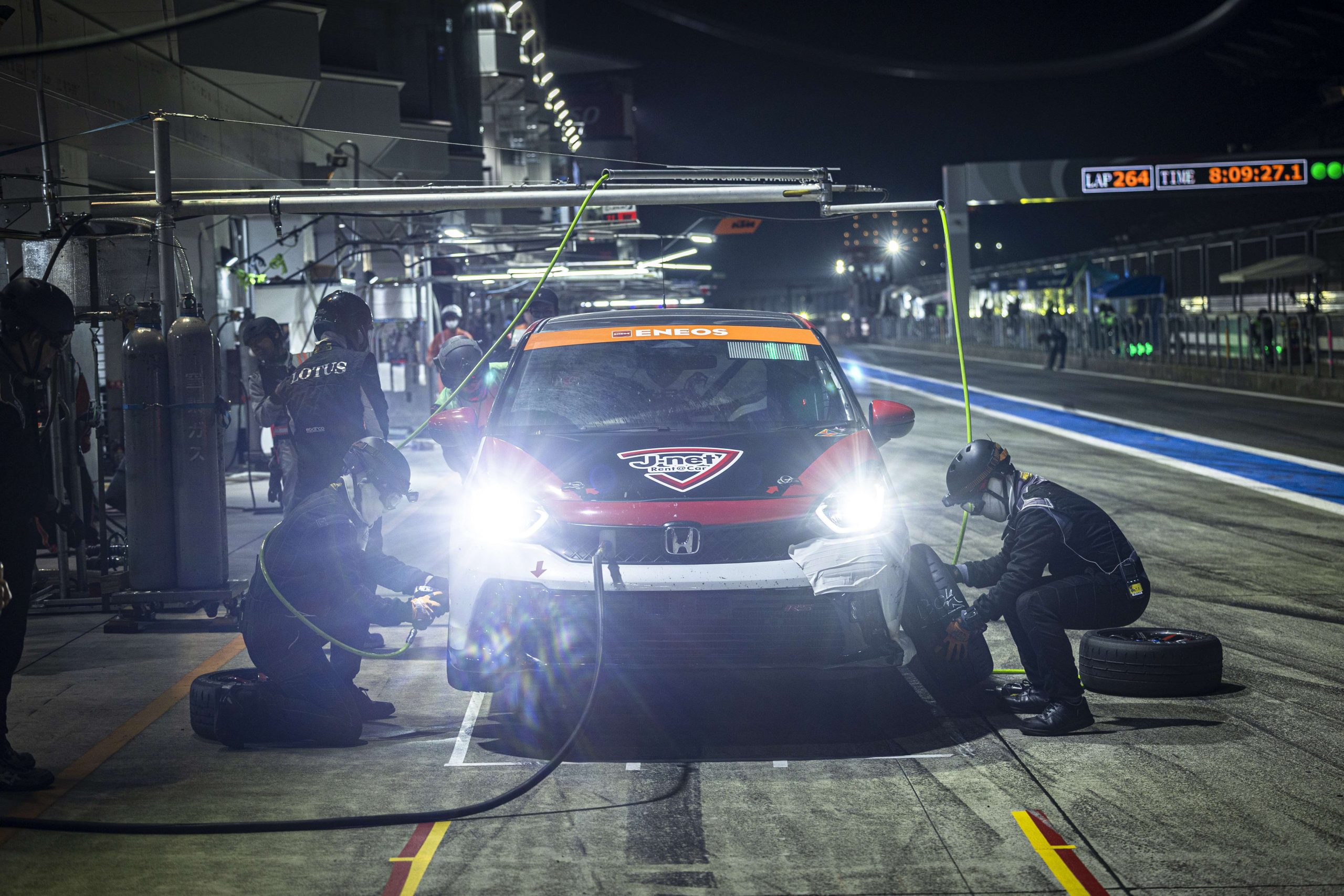 - レース序盤は順調に走行し、ピットイン作業を行う。