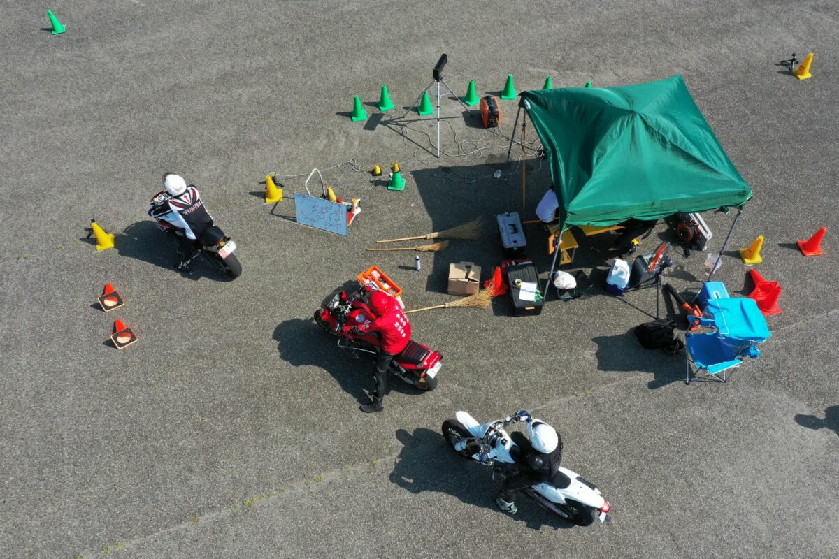 練習走行中にマシントラブルを起こし現地修理あったり、初のタイムアタックを本気で走りすぎて転倒があったり。