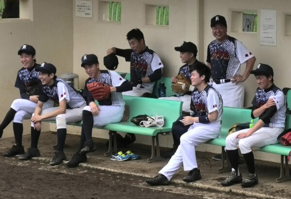 チャンスに凡退が続くも、絶対的エースの井上君(一級自動車研究開発3年生)がテンポのいい投球で流れを変える。