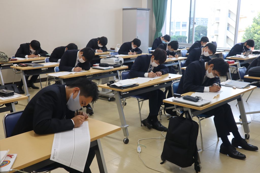 コロナ対策のため、いくつかの教室に分散して試験を行いました。