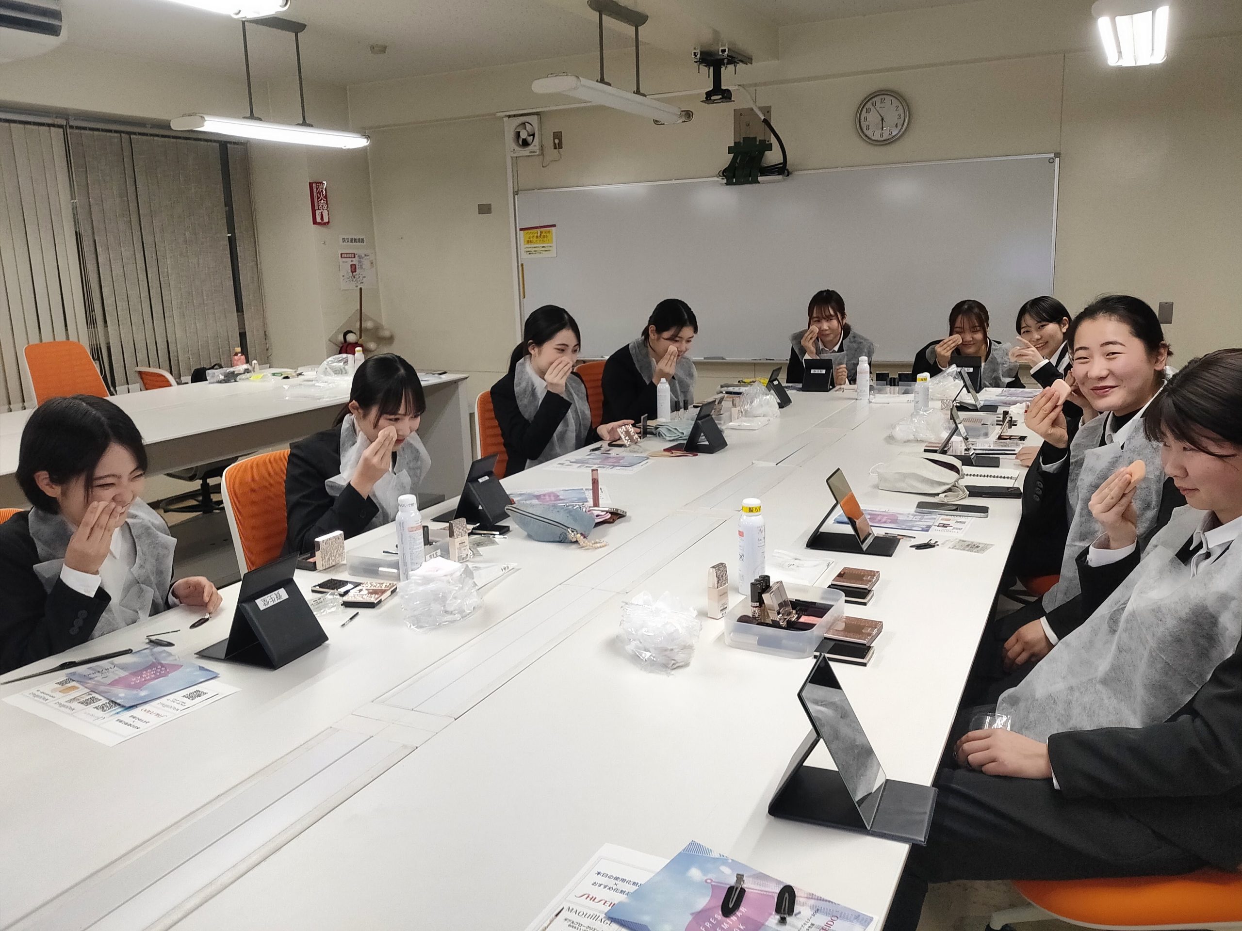 ビジネスメイクを学んでメイクをした学生たちは、いつもの可愛いらしさと大人びた雰囲気をまとって素敵に変身しておりました!