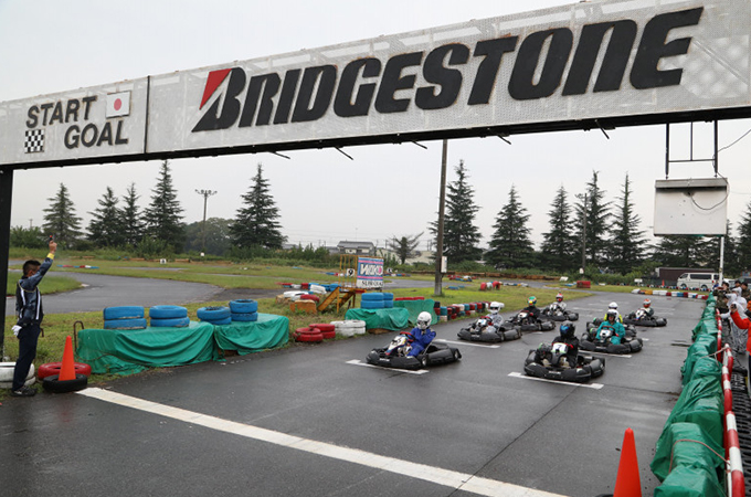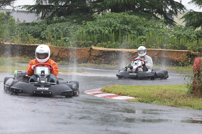 レース当日は、台風24号の影響で路面コンディションはウェット。レースが始まると各車のタイヤから水しぶきが上がり、ドライバーの視界が妨げられる状況となりました。また、カートのタイヤは溝のないスリックのため、無理をするとすぐにスピン。ドライバーは、その環境下で丁寧な操作を続ける必要があり、ドライビングテクニックの向上には絶好のコンディションになりました。