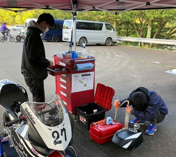 一級自動車の2年宍戸君が、1年時に自らの手でエンジンのオーバーホールを実施した思い入れのあるマシンを乗り、表彰台を狙いました。