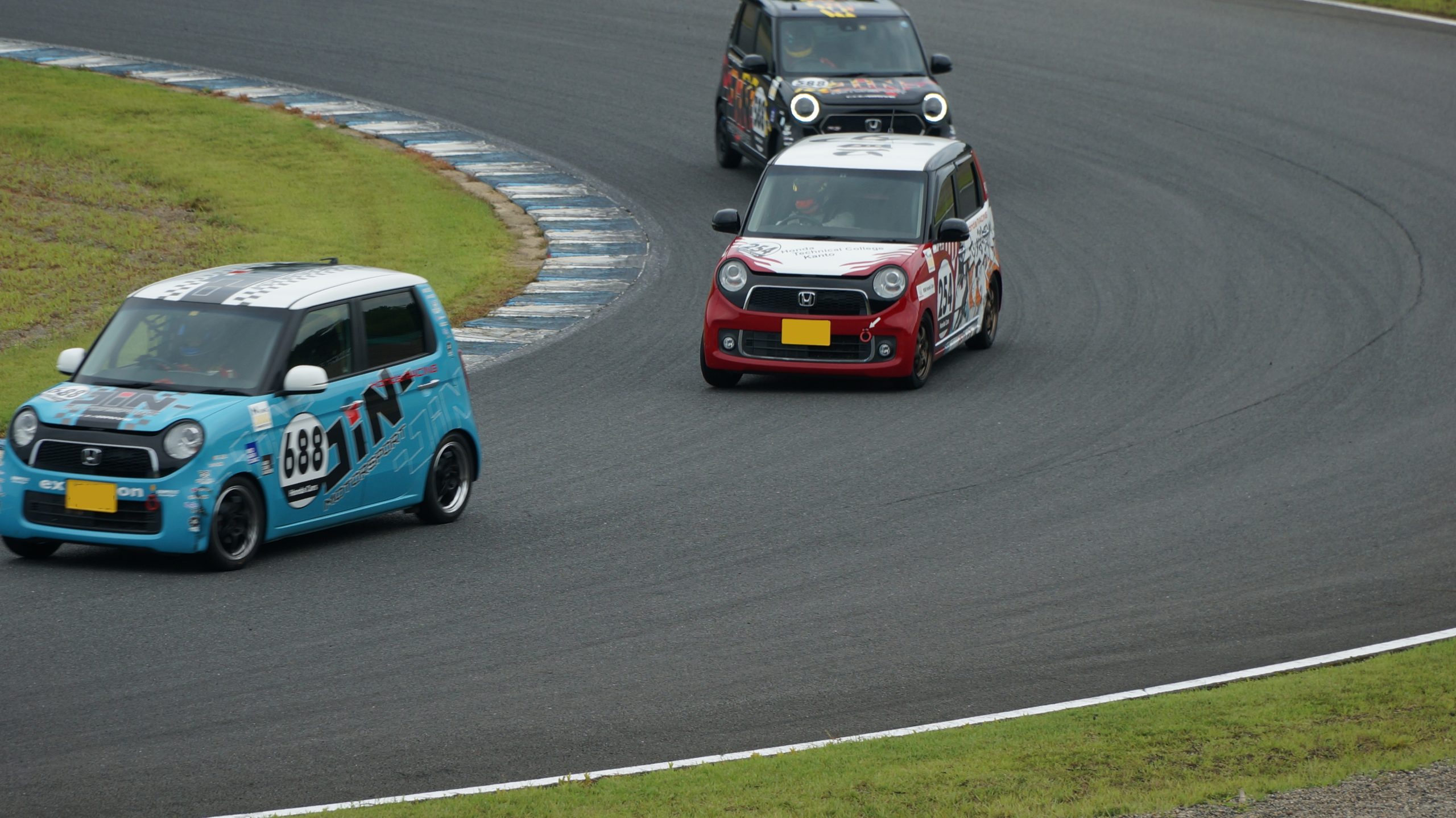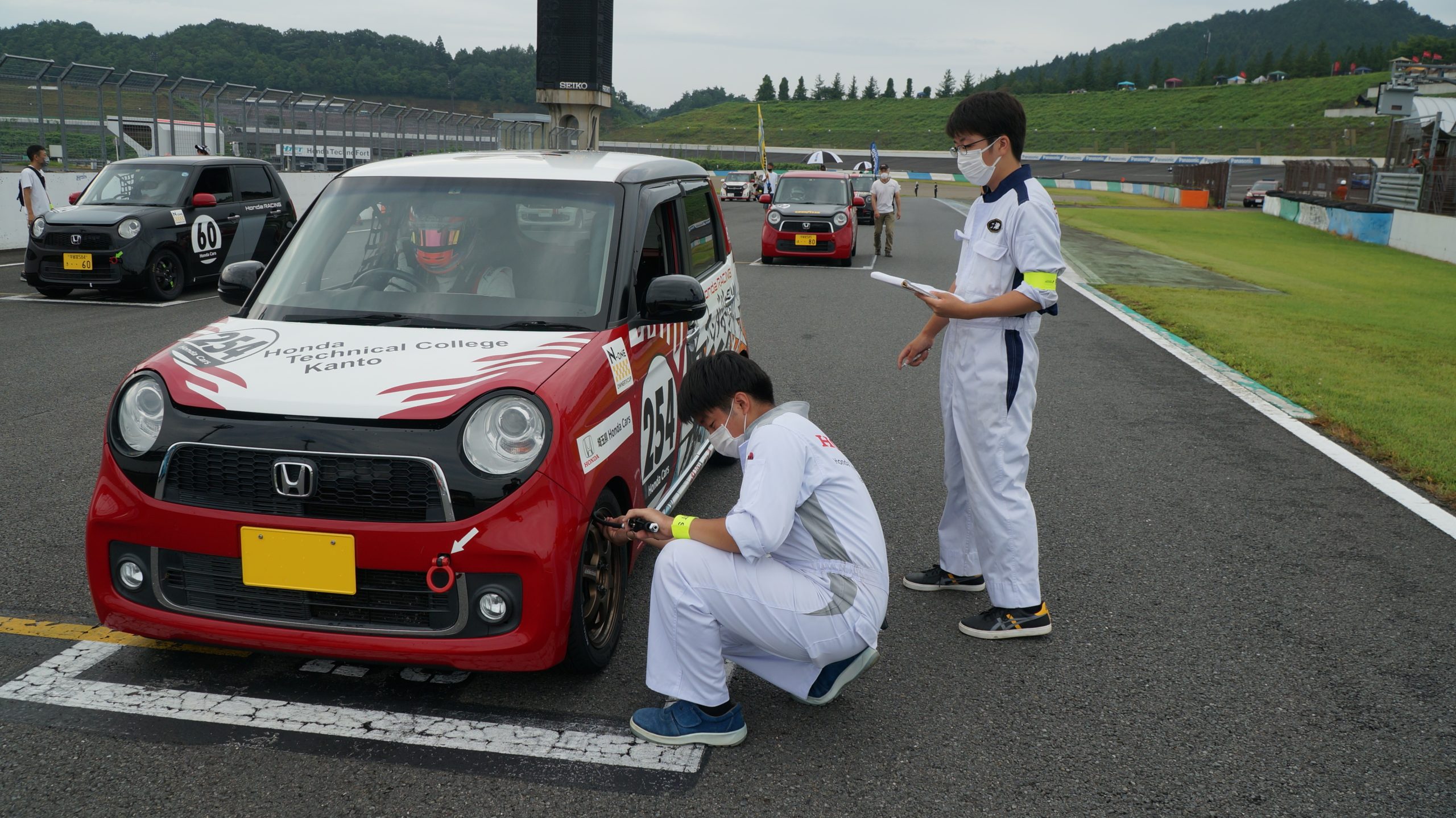 もてぎのN-ONEでの走行は、チームもドライバーも経験が少ない事から他チームの方々よりアドバイスをいただきました。