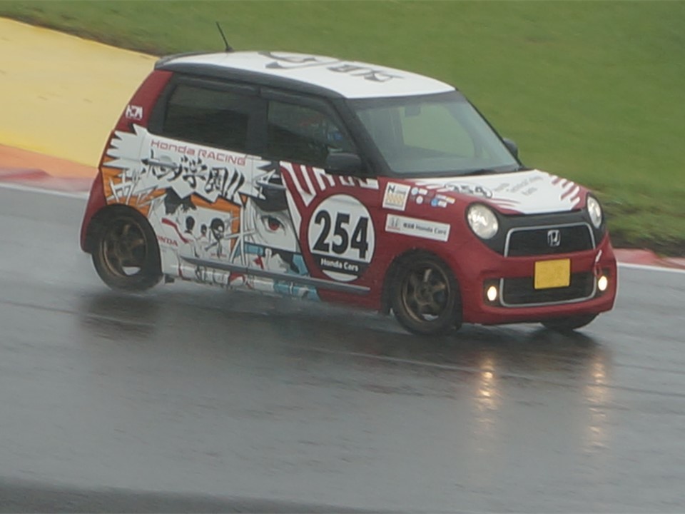 朝から走行終了まで弱雨が続き、時折雨脚が強くなり、路面状況はウェットコンディションとなる。
