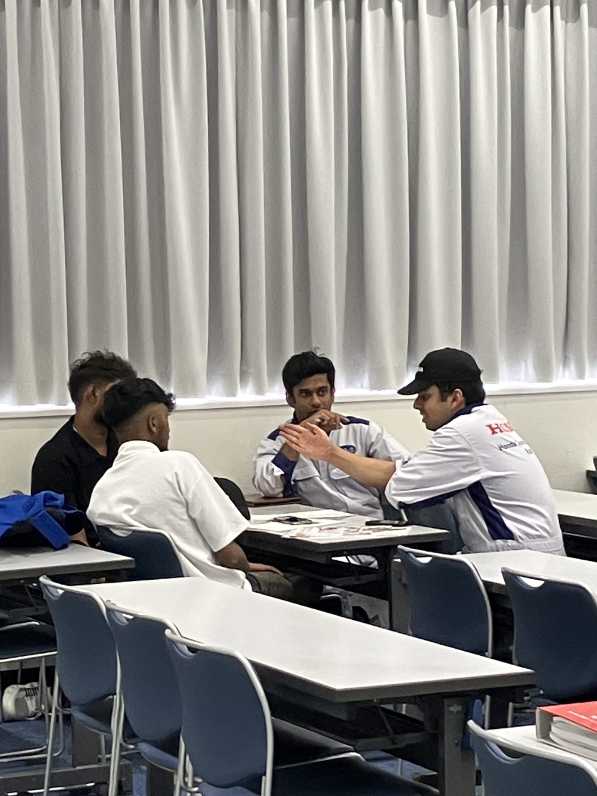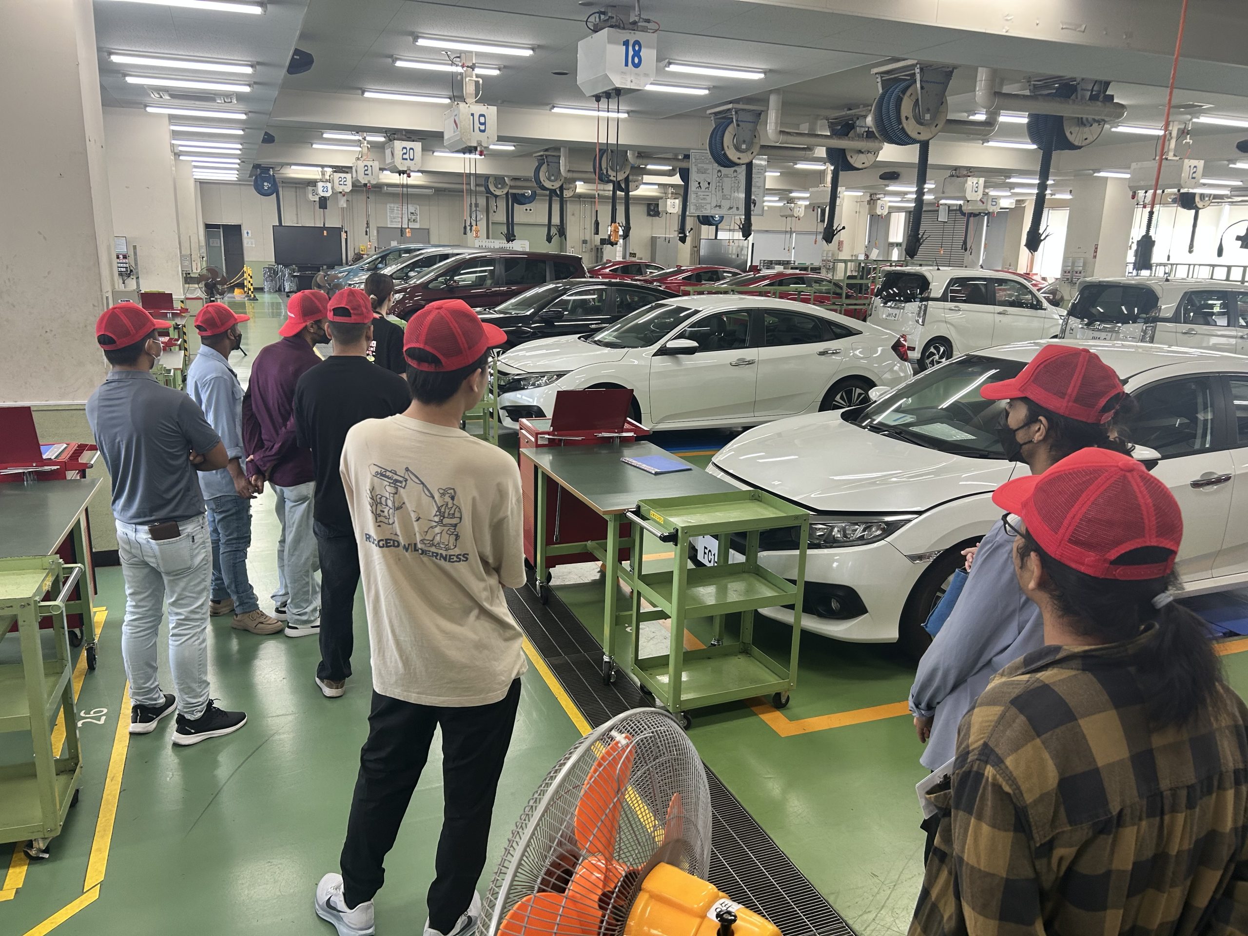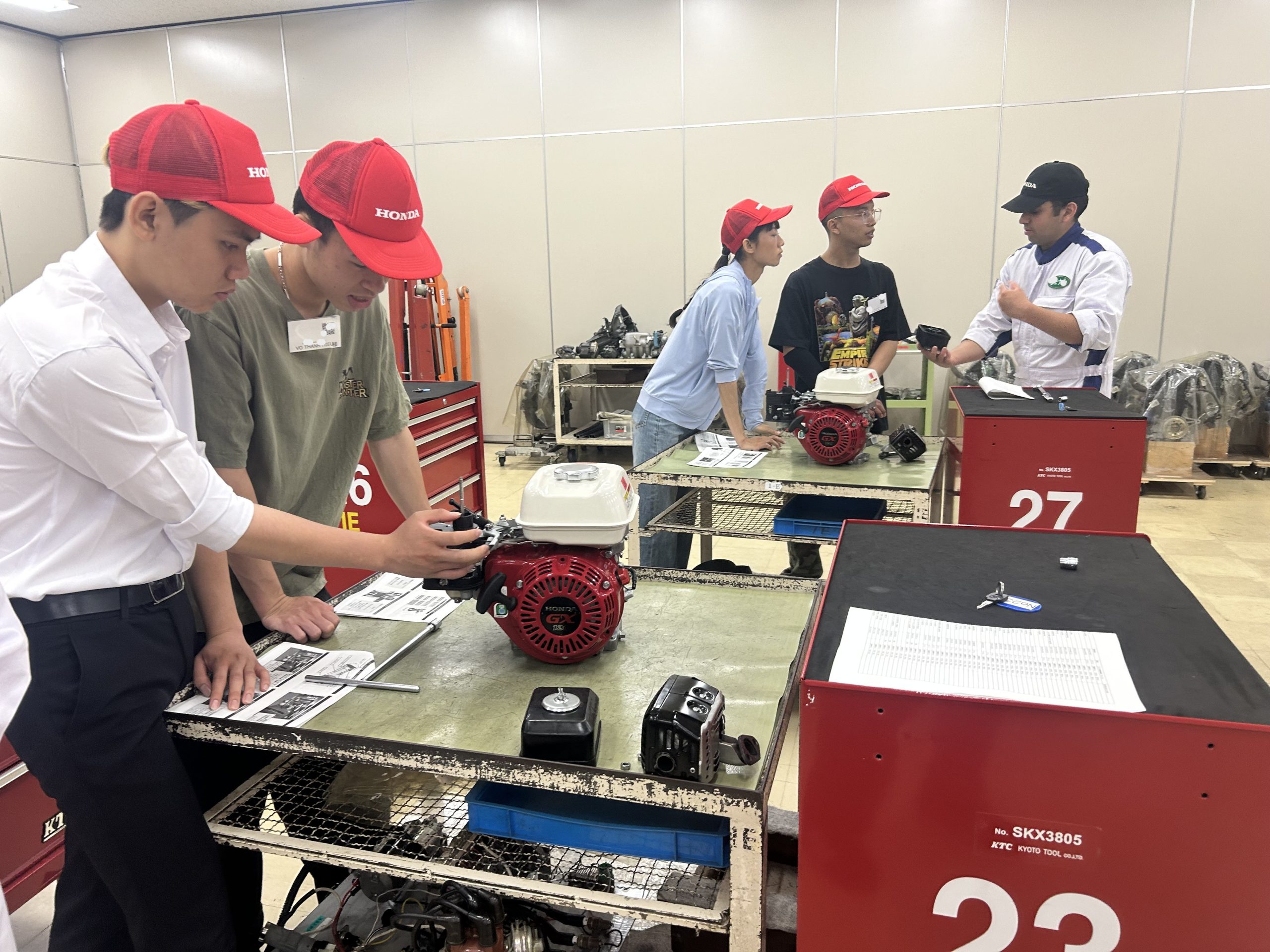 まずは整備体験です。サポートの学生も留学生ですので、みなさん楽しそうに会話をしながら体験をしています。