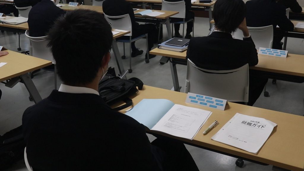 年明けから就職活動が始まる学生たちは、真剣な表情で受講していました。
