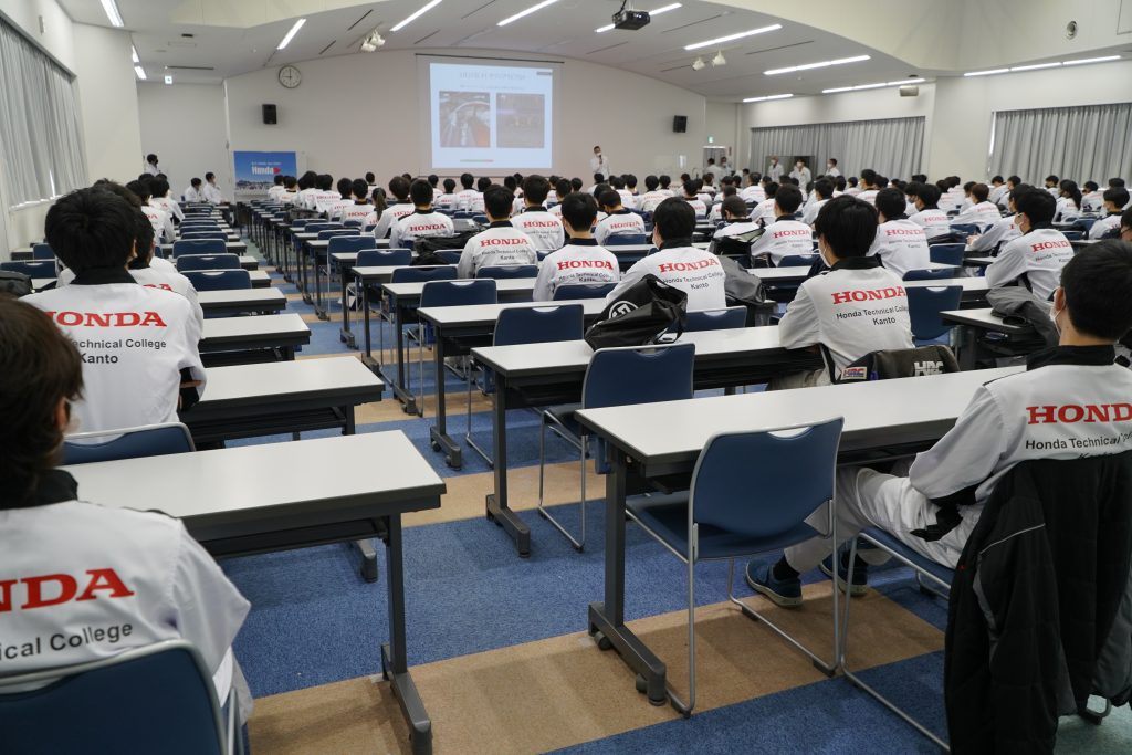 つなぎなどのサイズチェックや校内見学など、これから学ぶ仲間たちと共にホンダ学園での生活をスタートさせました。