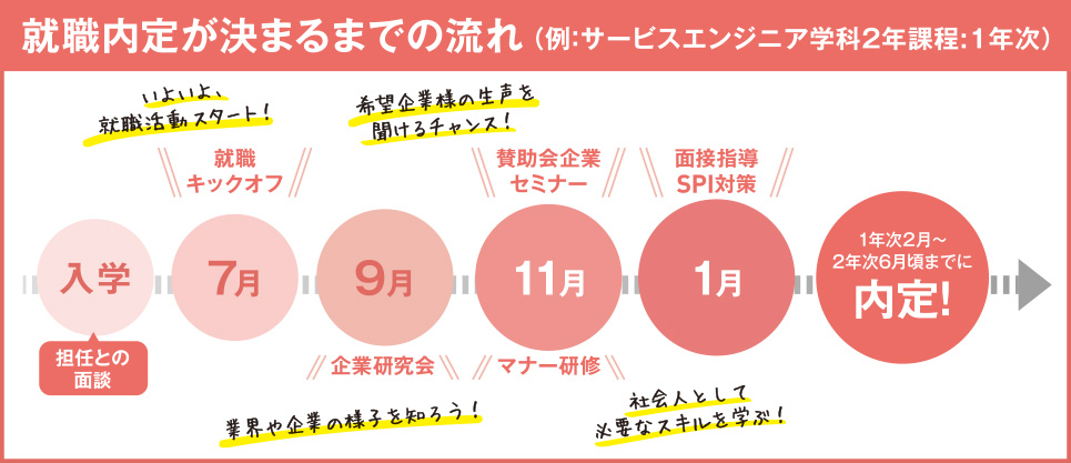 就職内定が決まるまでの流れ(サービスエンジニア学科2年課程:1年次)