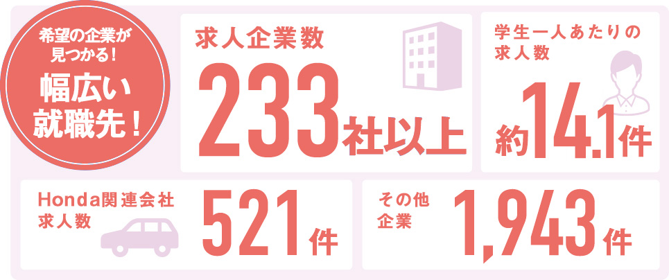 就職内定率は100%を維持。「Honda」に強い就職実績。