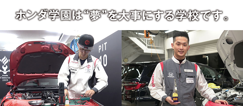 在学中の4年間は、部活と学園祭実行委員の活動に注力。自動車整備部の復活やN360のレストアにも関わり、充実した学園生活でした。先生や同級生と車やバイクの話をしたり、いじったりする時間がとても楽しかったです。現在は自動車のメンテナンスを通じて、お客様の安心・安全なカーライフのサポートをしています。自分が整備をした際に、お客様から「ありがとう」と言っていただけた時のやりがいは大きいです。当社はHonda整備士の世界大会で1位・2位になったスタッフが在籍し、世界最高峰の整備レベルであることが魅力のひとつ。技術を磨き続ければ世界にチャレンジできます。一緒にHondaを盛り上げましょう!