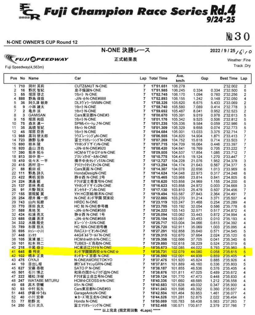 本校の同好会:HTEC R&M同好会がN-ONE OWNER‘S CUP※ 第12戦@富士スピードウェイに参戦してきました。